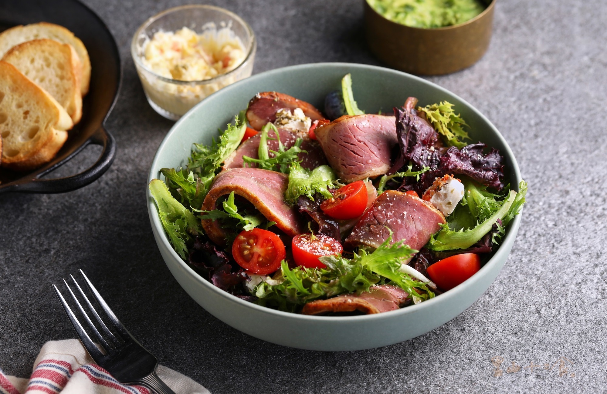 把煙燻牛肉切小塊煎香,很適合當濃湯或沙拉的裝飾,增添迷人香氣 !