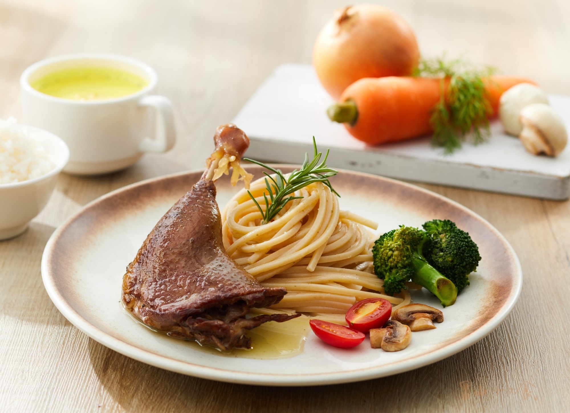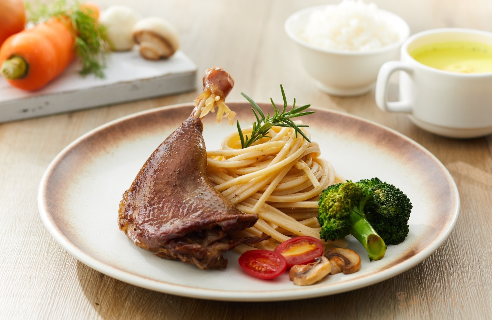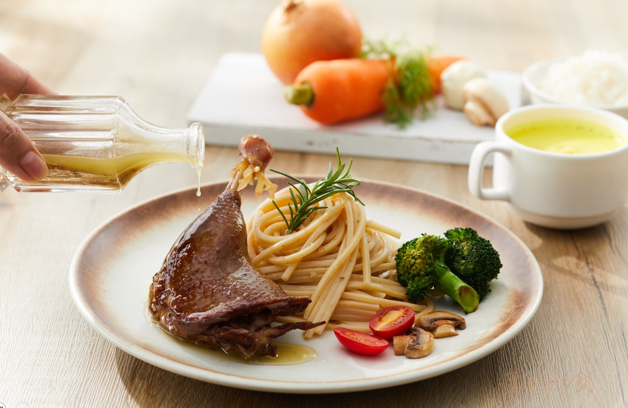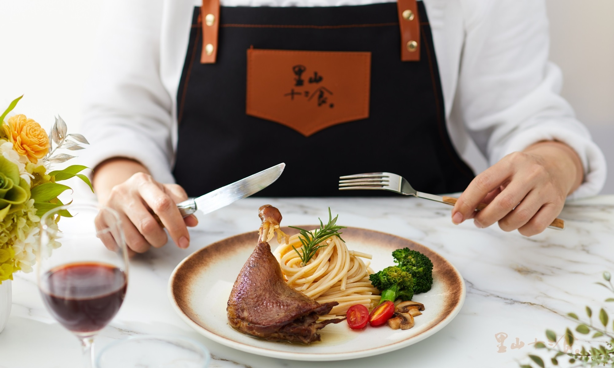 - 嚴選台灣胭脂鴨腿、鴨油,佐以迷迭香、羅勒、馬郁蘭、奧勒岡、百里香、薄荷、薰衣草、山艾天然香料,鹽漬7天。
