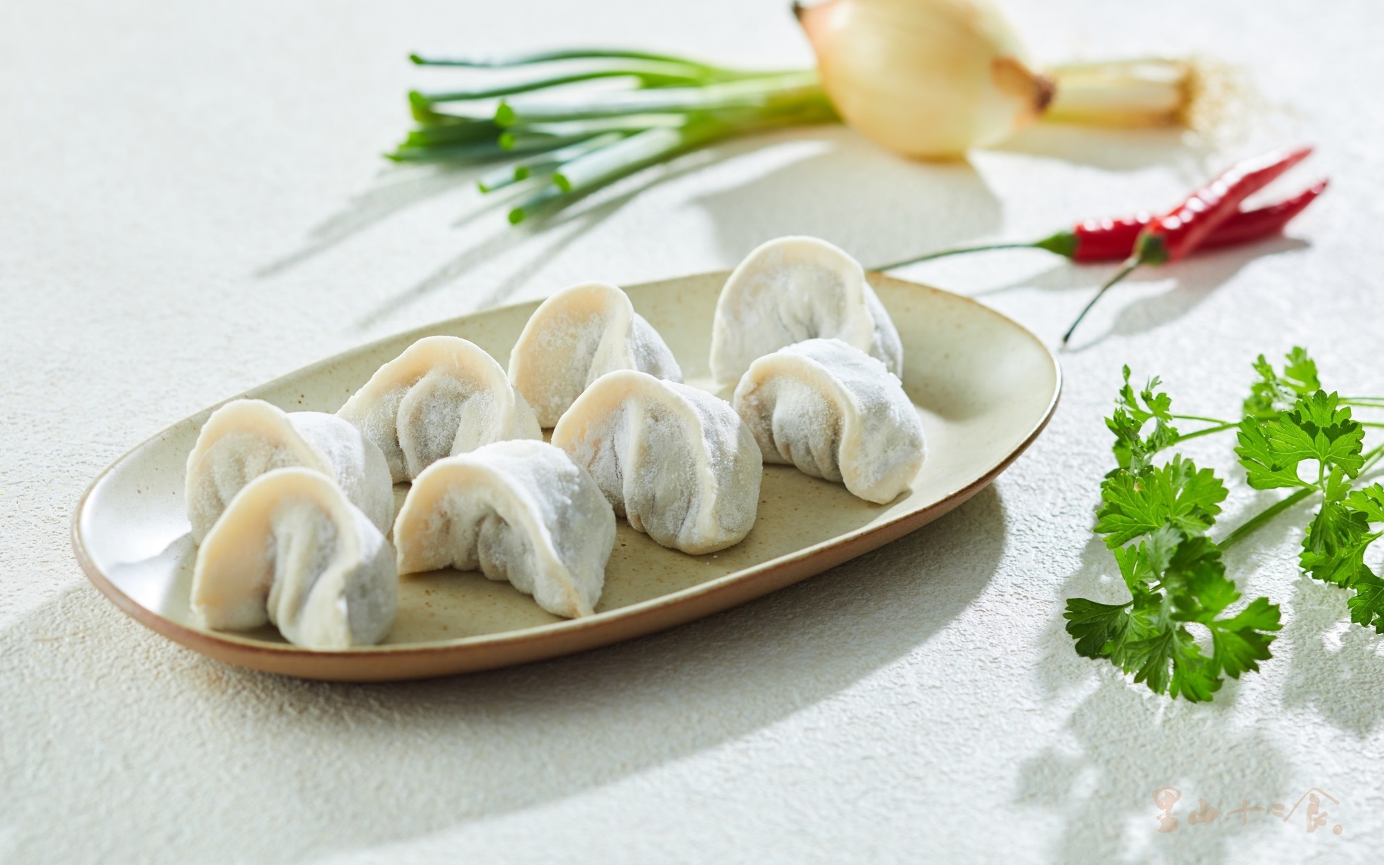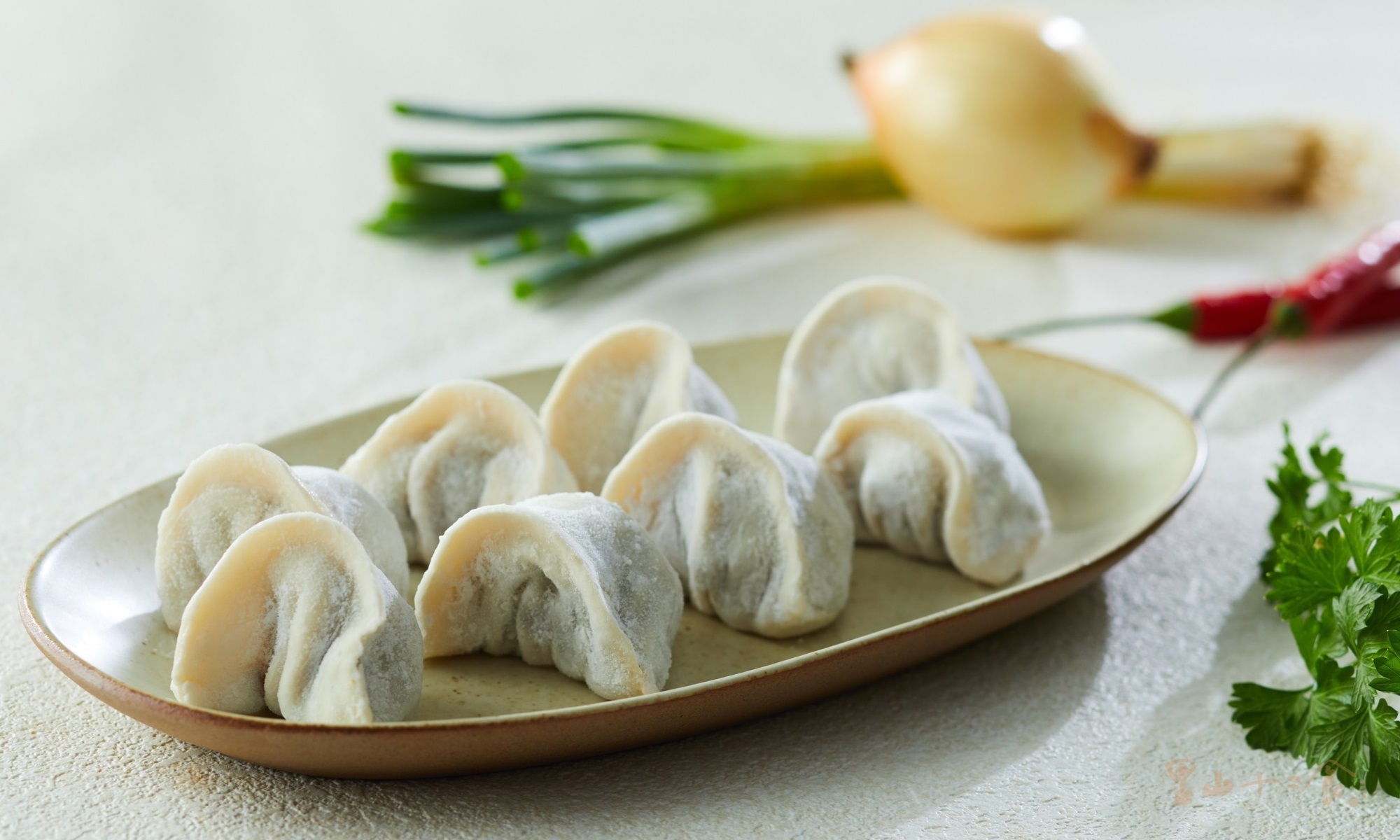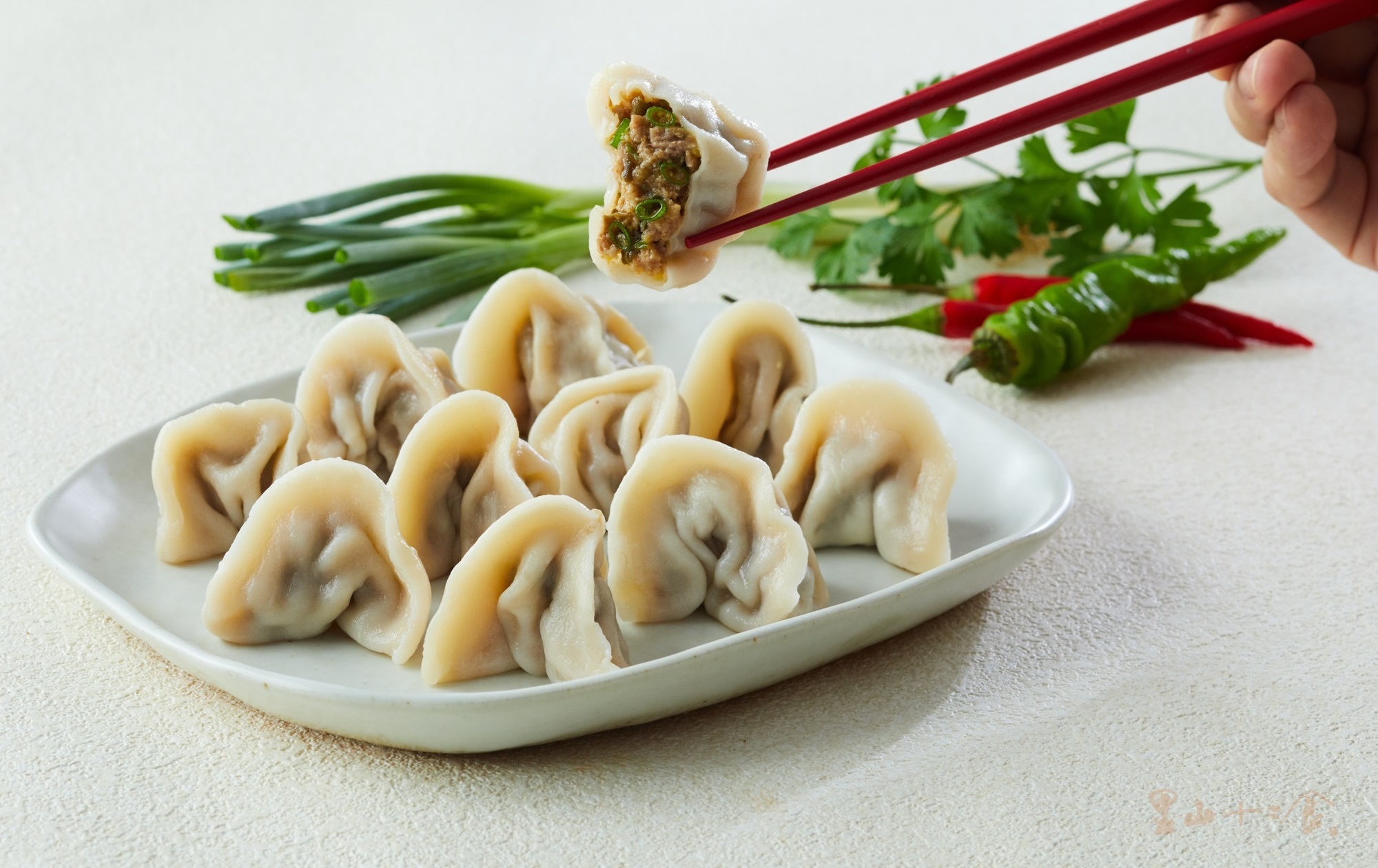 -以黃金比例六道工序,一麵三筋二次發酵醒麵,如此耗工才能製成不像冷凍,像現包的Q勁彈牙手工餃皮,極凍鎖鮮內餡肉鮮湯美。