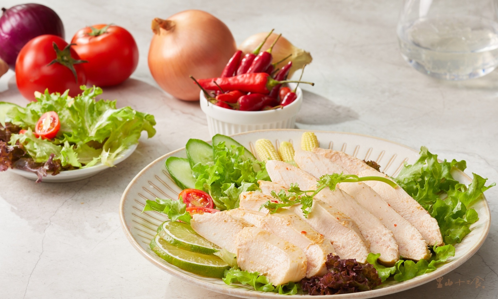 【里山十二食】結合國內知名湯品大師,嚴選台灣在地養殖,每份重量150公克的完整現宰溫體雞肉。不使用市面舒肥機器,堅持耗費人力使用獨家製程,精準控制亨煮、浸泡、冷卻的時間與水溫溫度,佐以新鮮檸檬汁、鹽麴、食用醋、天然香料調配而成的醬汁,雞胸肉甜美多汁不乾,讓一直抗拒雞胸肉的老饕,都被征服 !!